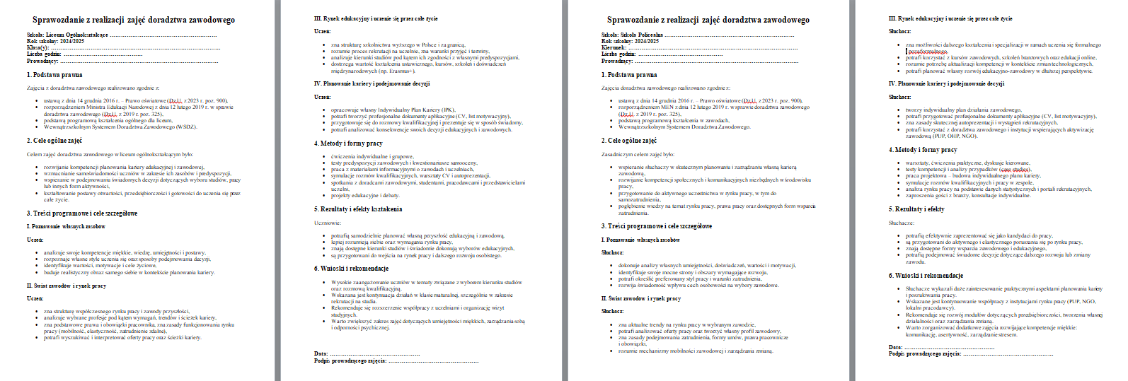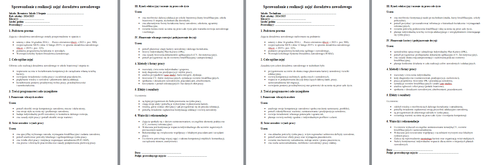 Gotowe Sprawozdania z Doradztwa Zawodowego