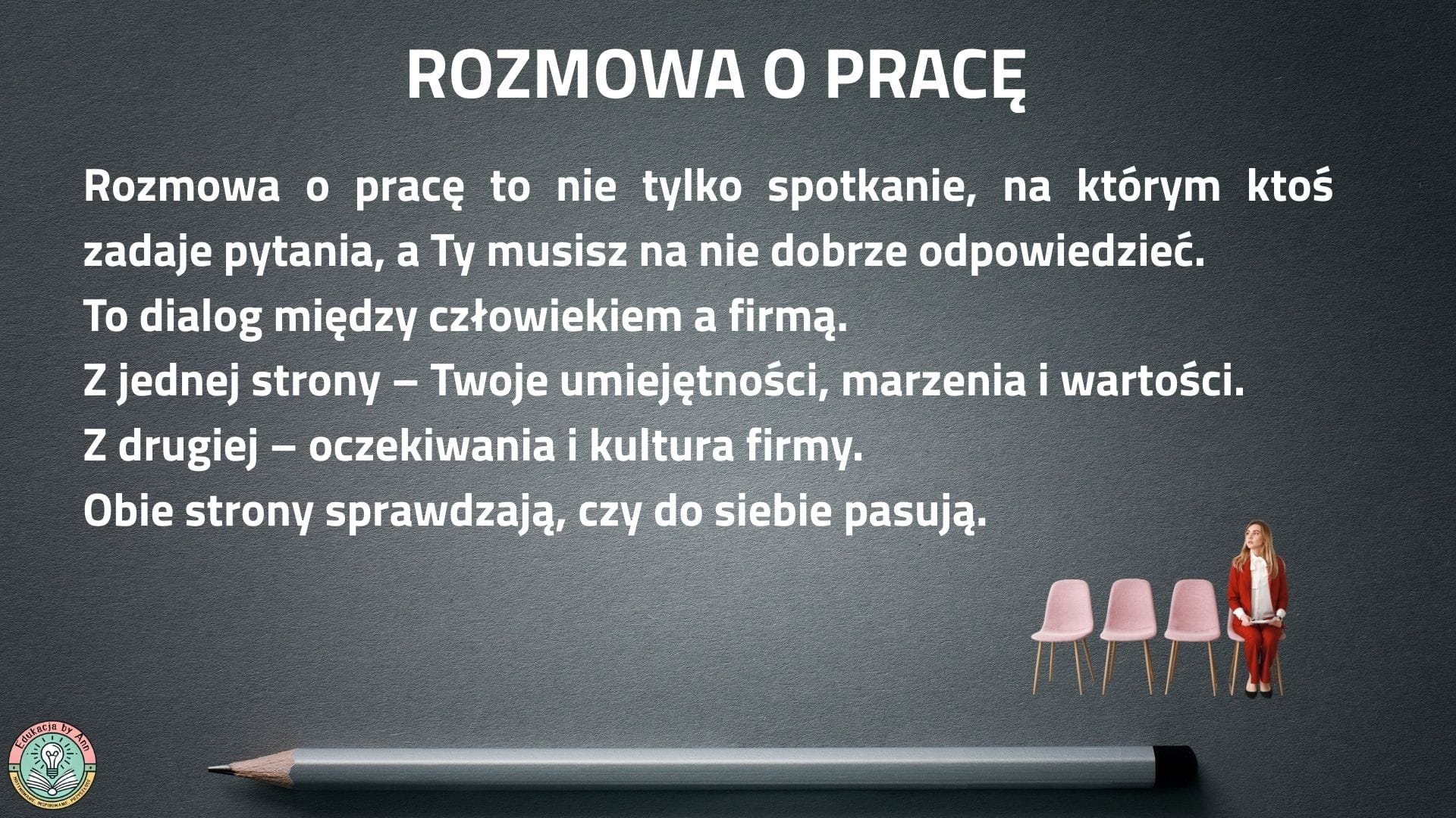 Przedstawiamy gotowy, nowoczesny materiał edukacyjny „Rozmowa o pracę z kulturą”, który wprowadza uczniów w świat rekrutacji w sposób ciekawy, konkretny i pełen wartości.