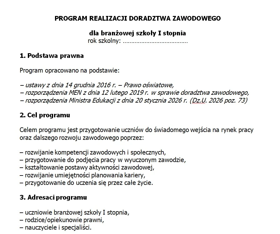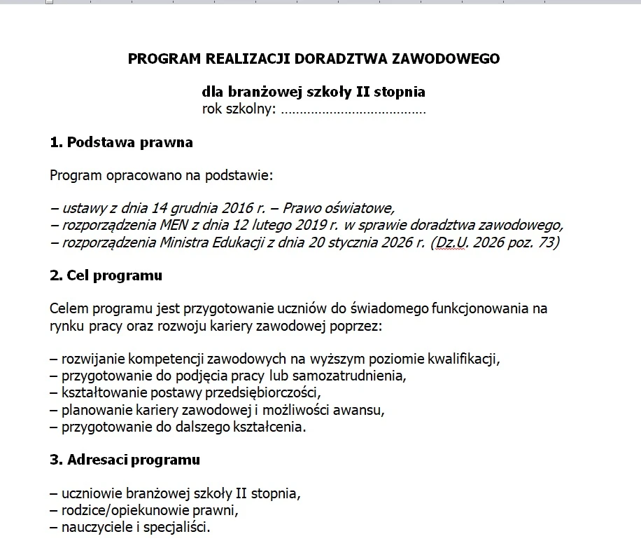 Doradztwo zawodowe 2026 – komplet dokumentów dla szkół branżowych (I i II stopnia) | WSDZ, program, wpisy, diagnoza