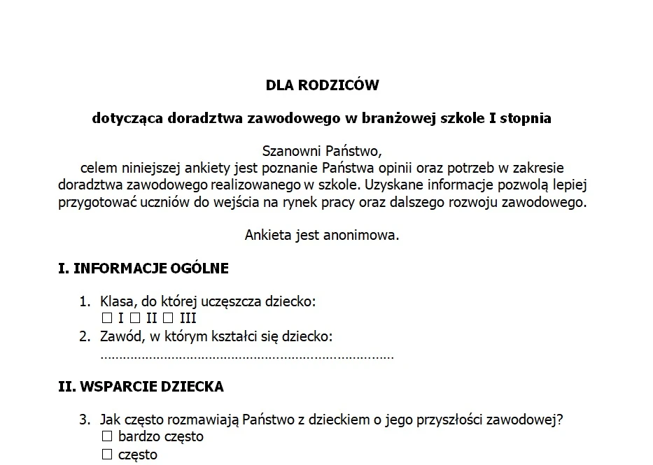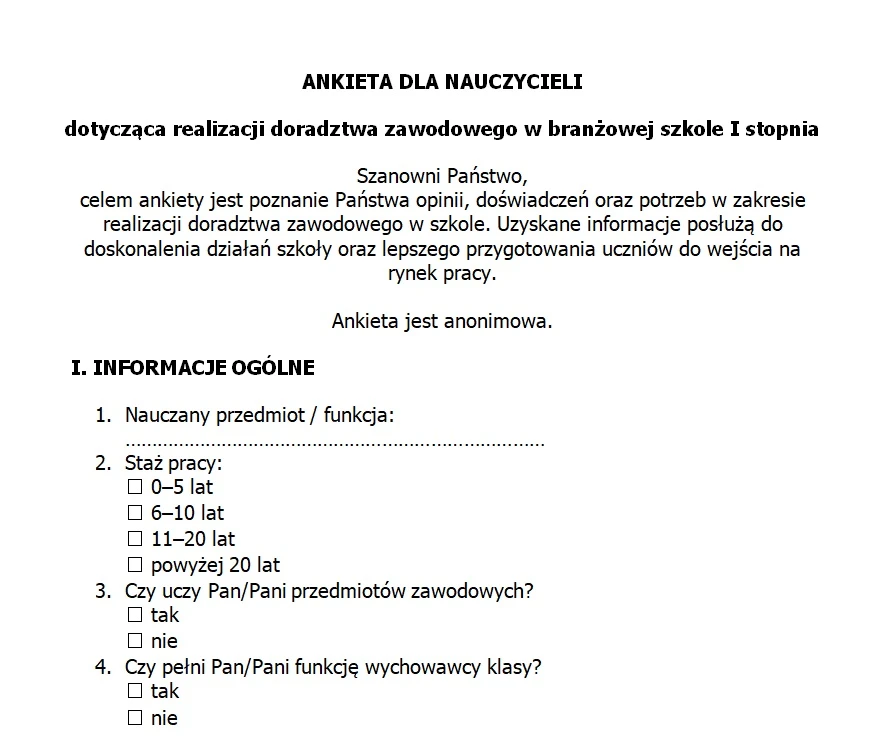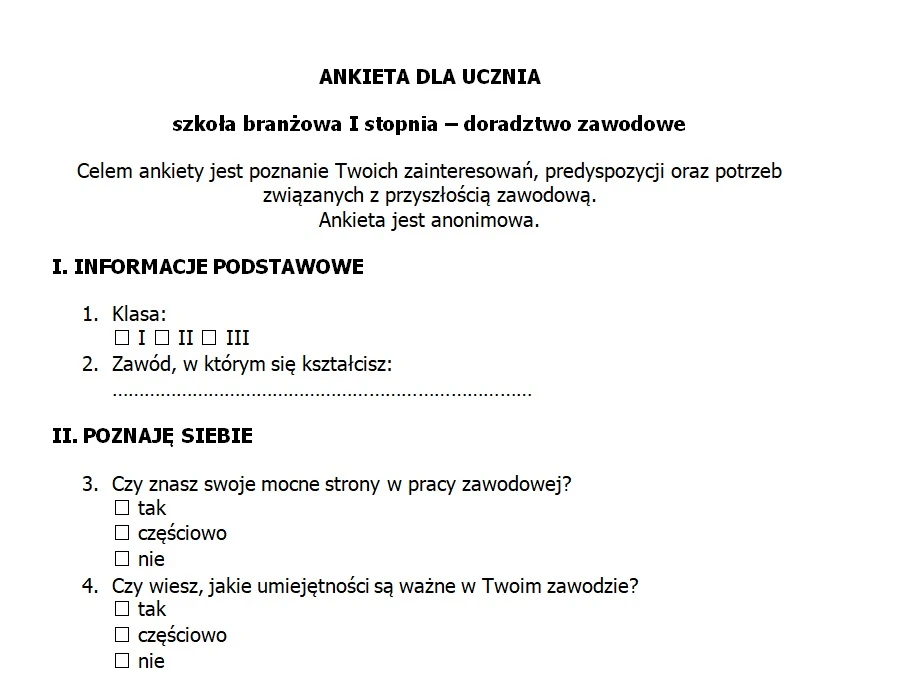 kompletny system doradztwa zawodowego dla szkoły branżowej