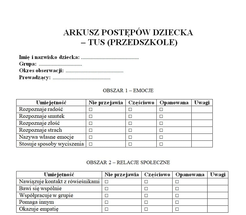 Kompleksowy program Treningu Umiejętności Społecznych (TUS) w przedszkolu – zestaw materiałów edukacyjno-terapeutycznych PDF/WORD