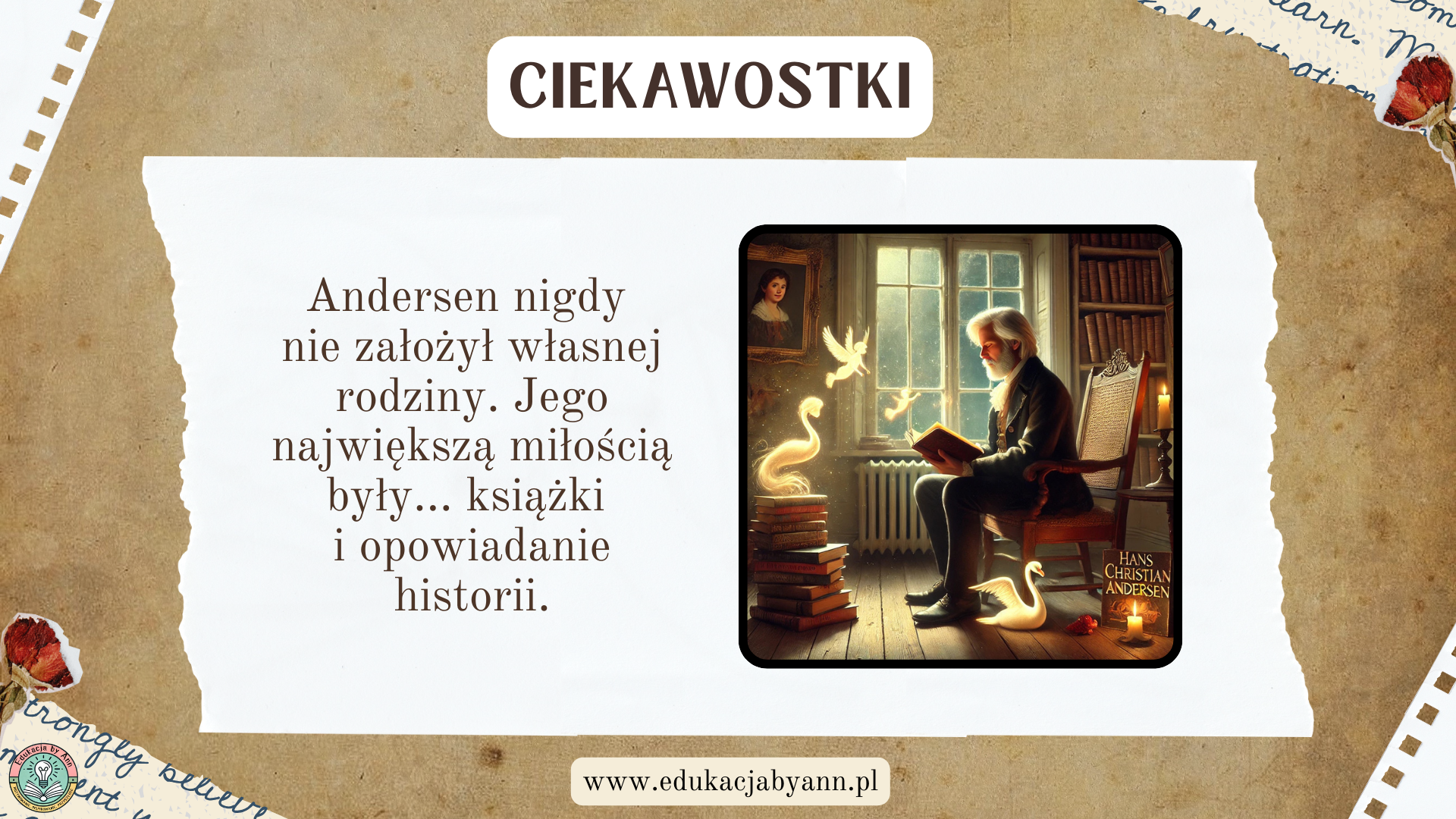 2 kwietnia to nie tylko data – to święto czytelnictwa i hołd dla Hansa Christiana Andersena, jednego z najważniejszych twórców literatury dziecięcej. Z tej okazji przygotowaliśmy komplet materiałów, które łączą wiedzę, inspirację i magię opowieści.