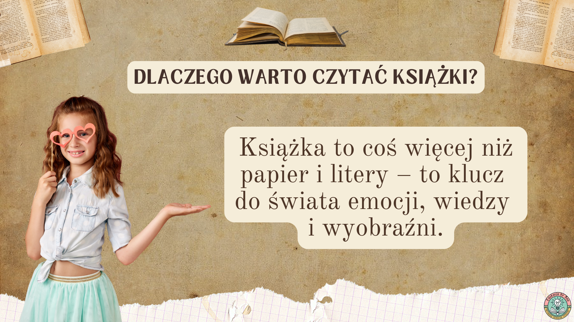 Nie musisz nic projektować – wystarczy pobrać plik PDF, wydrukować slajdy (w formacie A4 lub A3) i stworzyć wyjątkową przestrzeń, która zachęci uczniów do rozmowy o książkach i sile literatury.