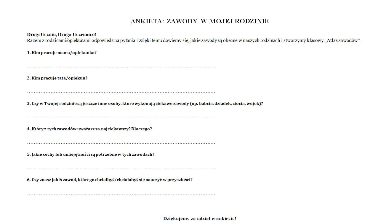 Gotowe narzędzie, prosta ankieta „Zawody w mojej rodzinie”.
