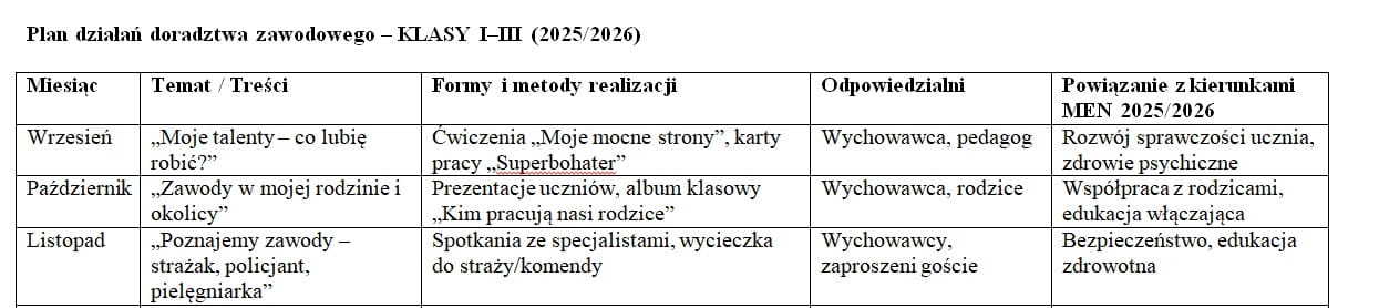 Plan działań doradztwa zawodowego 2025/2026 – gotowy dokument dla szkoły