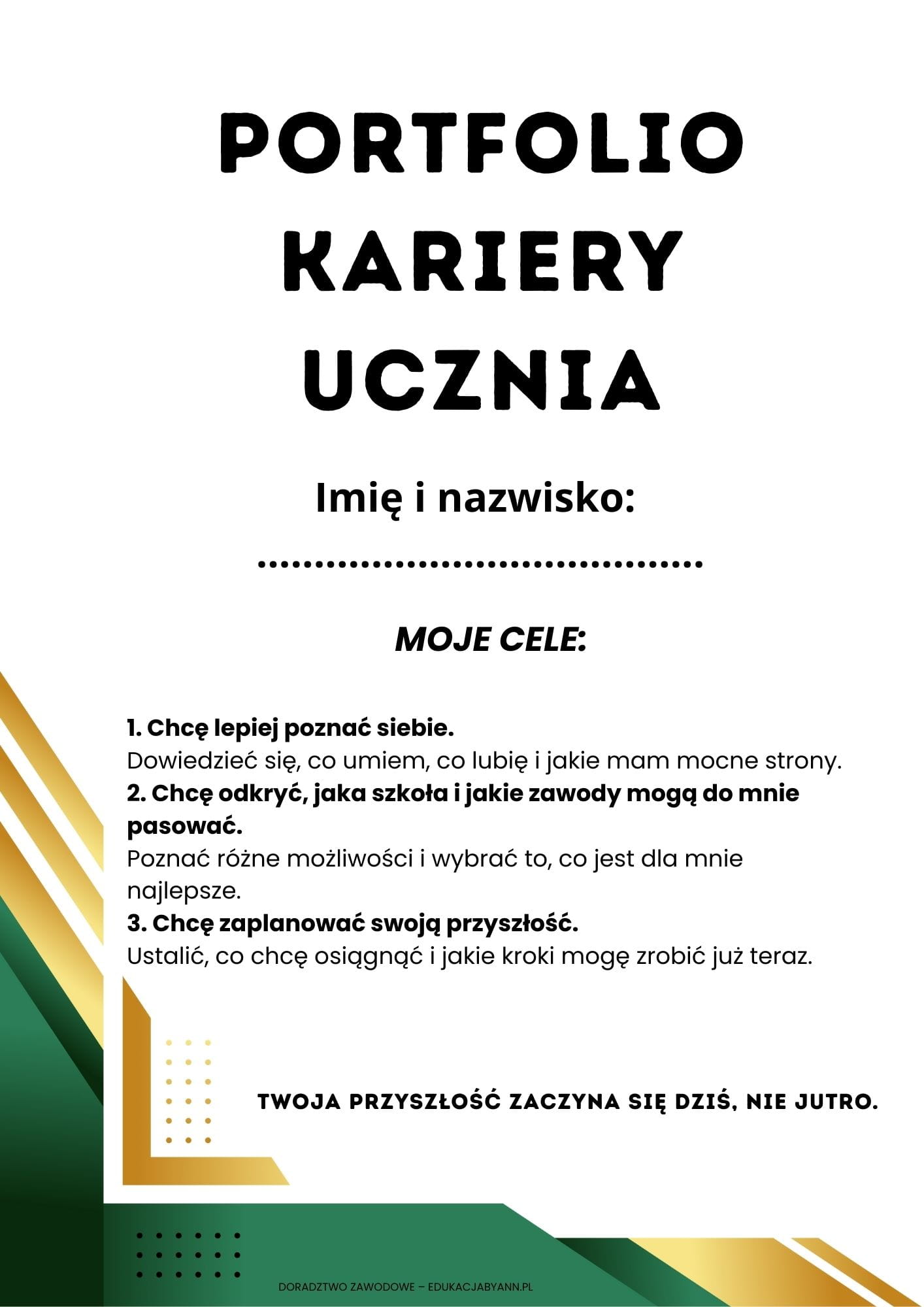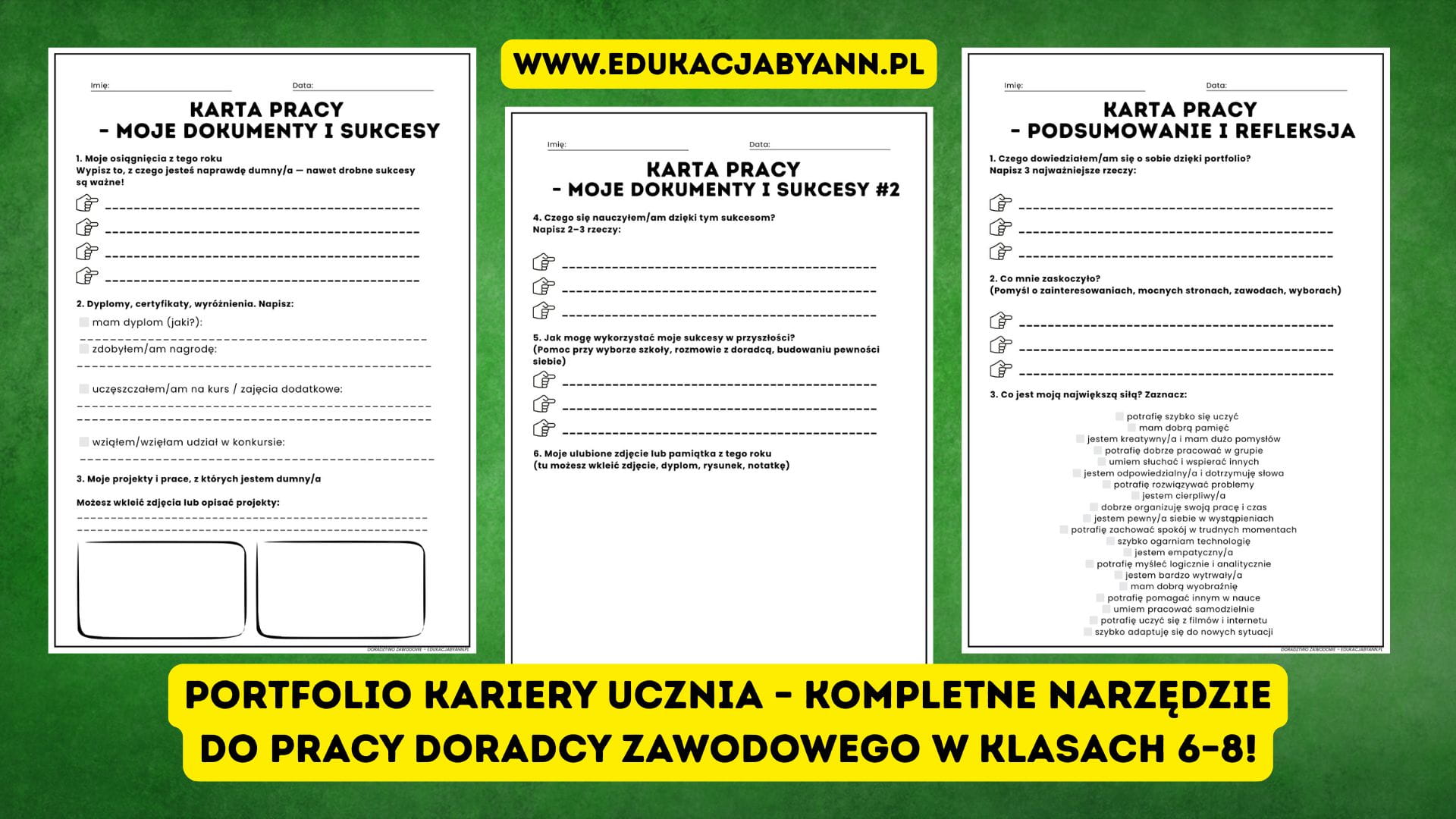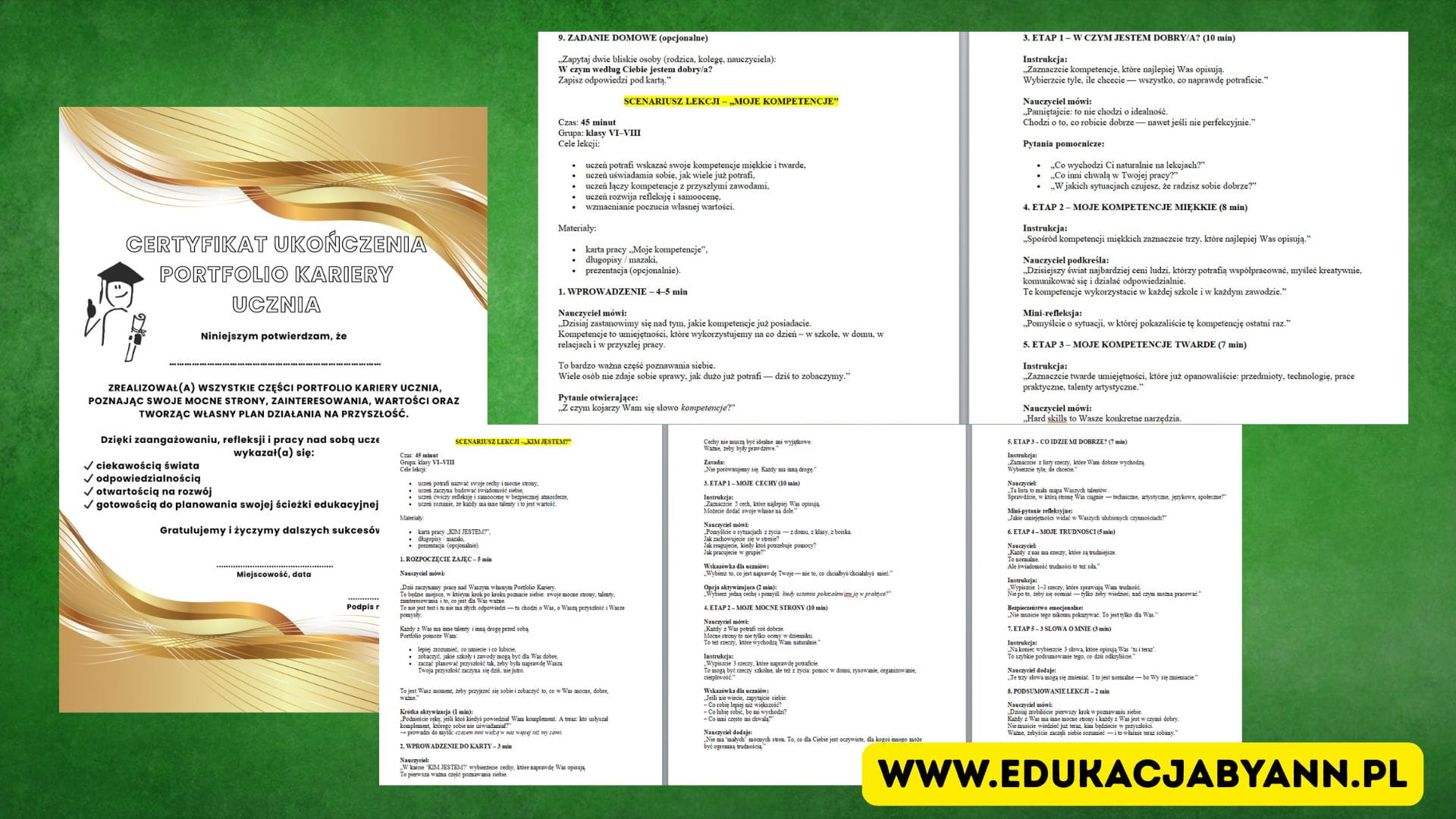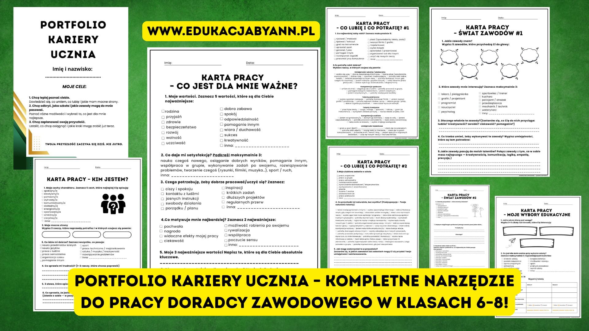 Portfolio Kariery Ucznia – 9 kart pracy, scenariusz lekcji i certyfikat | Doradztwo Zawodowe – EdukacjabyAnn