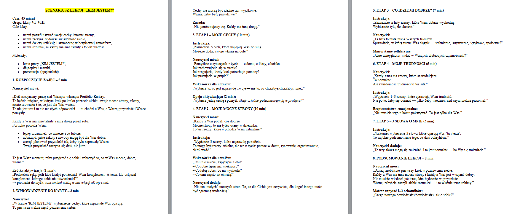 ✔ Pełny scenariusz lekcji