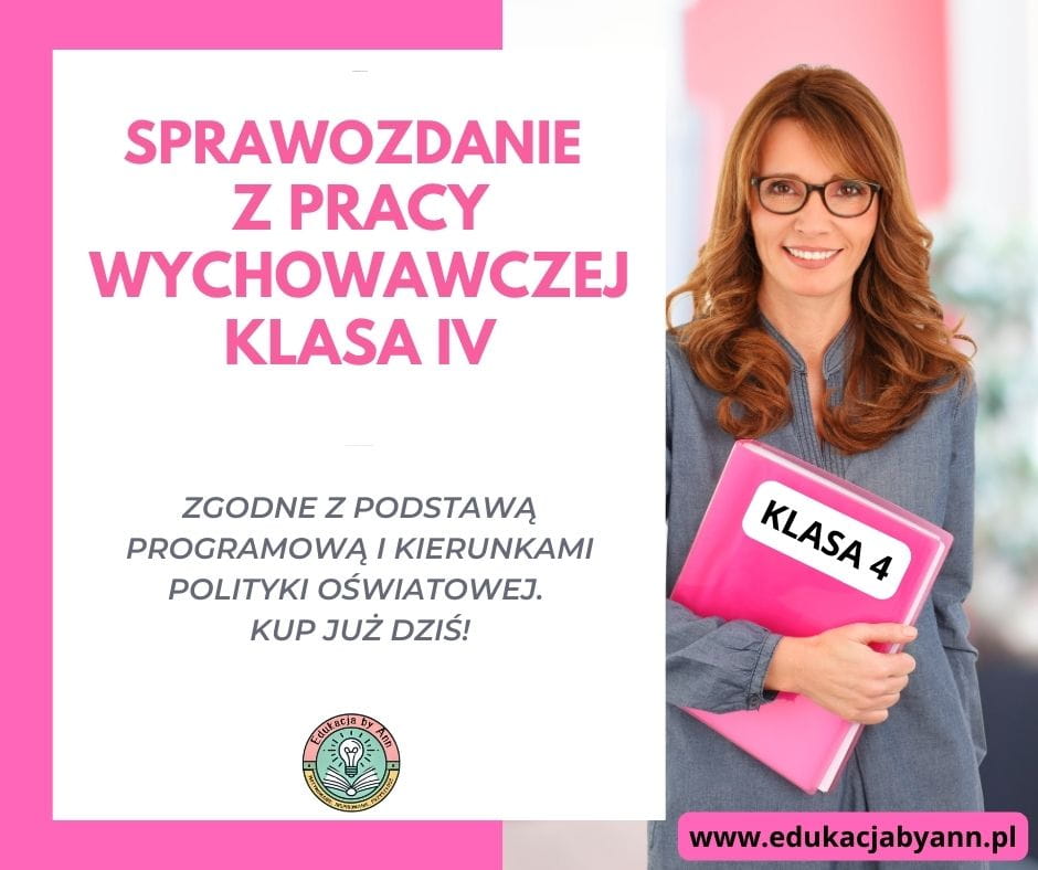 Kompletne sprawozdanie wychowawcy klasy IV szkoły podstawowej, opracowane zgodnie z aktualnymi kierunkami realizacji polityki oświatowej MEN na rok szkolny 2025/2026. Dokument został przygotowany językiem nadzoru pedagogicznego i może być bezpośrednio wykorzystany w dokumentacji szkolnej, teczce wychowawcy oraz podczas kontroli i ewaluacji.