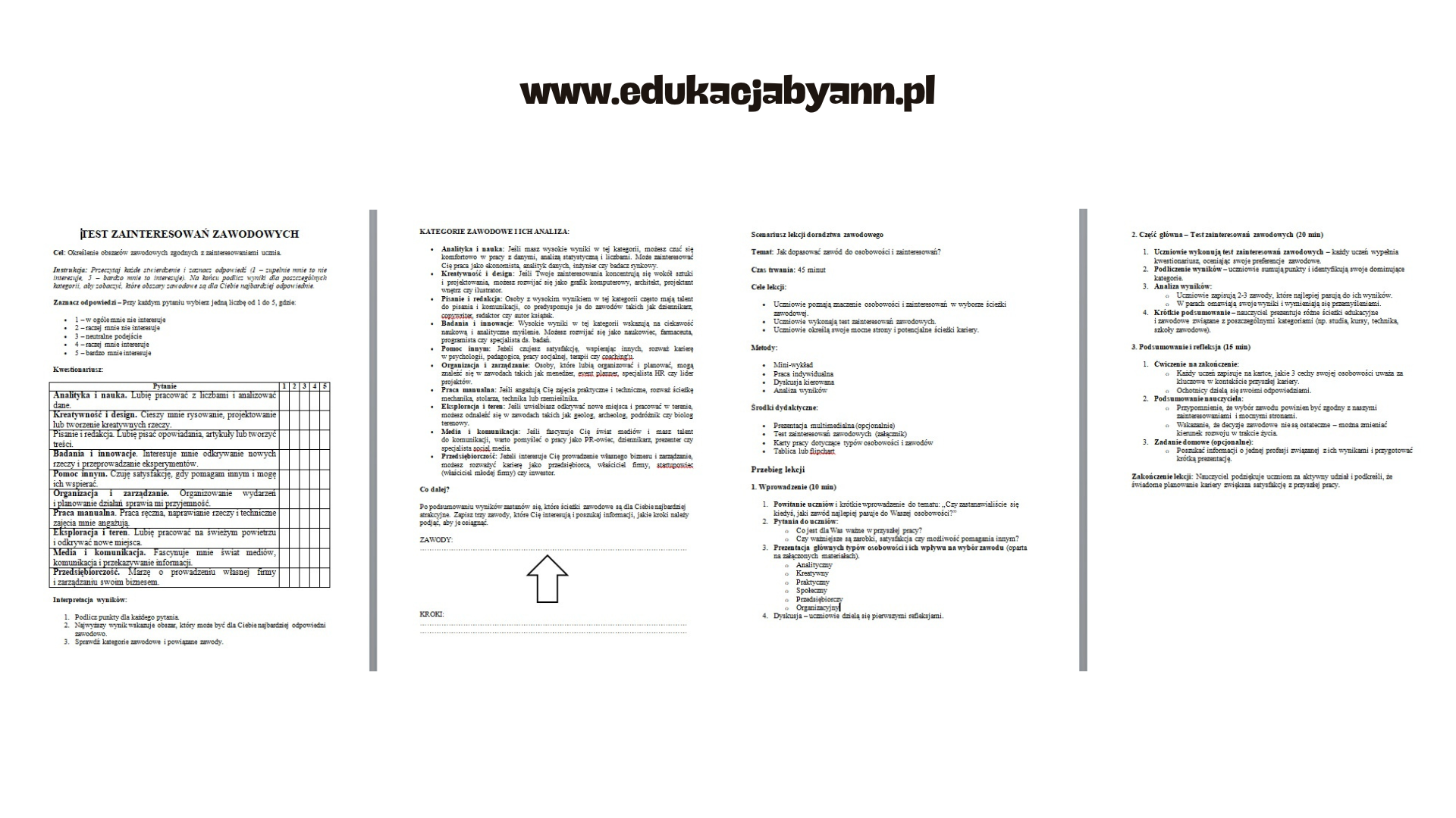Pomóż swoim uczniom odkryć ich ścieżkę zawodową w sposób świadomy i dopasowany do ich unikalnych predyspozycji! Nasz kompleksowy pakiet edukacyjny to idealne narzędzie zarówno dla szkół podstawowych, jak i ponadpodstawowych.