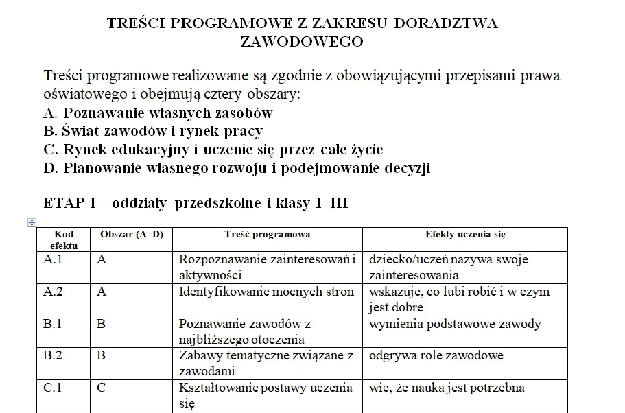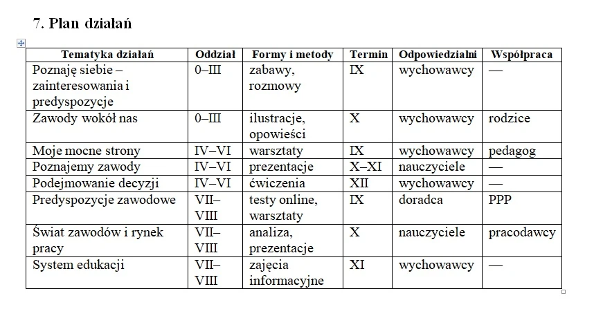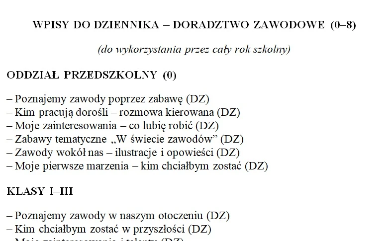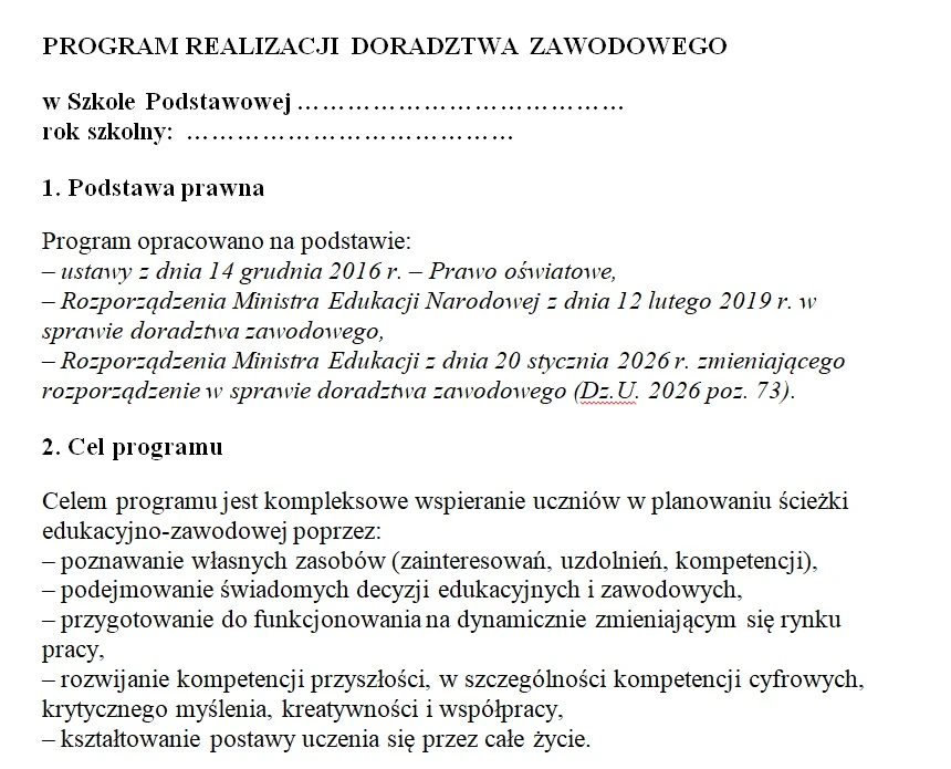✔ Program roczny doradztwa zawodowego
