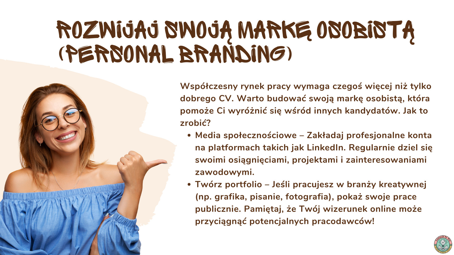 - Zasady efektywnego zarządzania czasem, pisania CV oraz rozwijania marki osobistej.