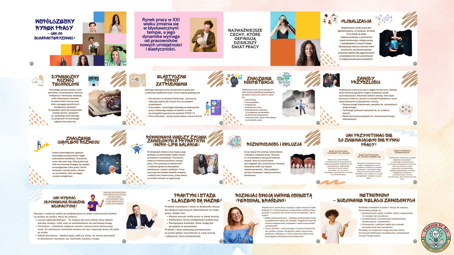 - Kluczowe informacje o zawodach przyszłości, kompetencjach miękkich i cyfrowych.