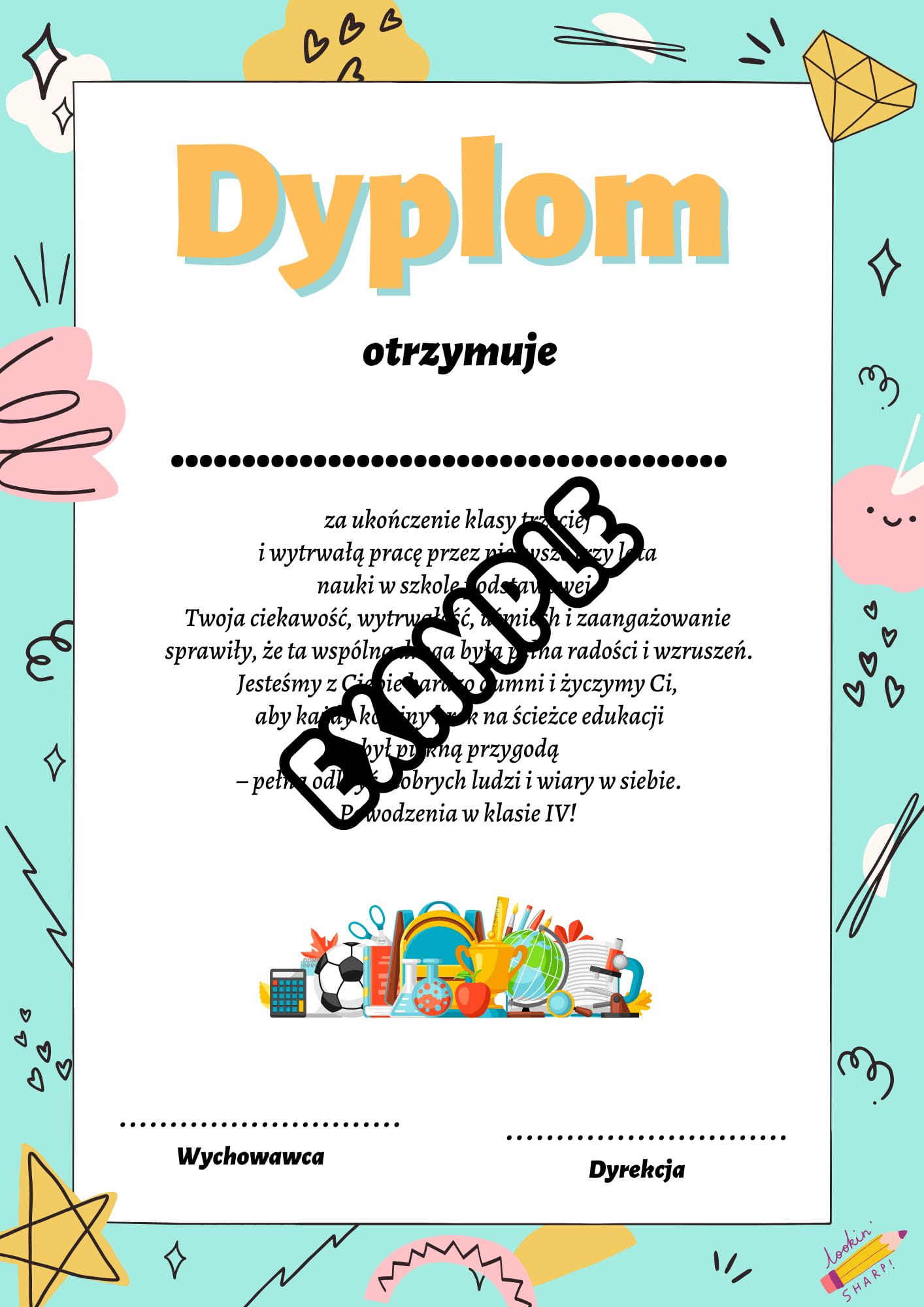 Dyplom ukończenia klasy III – estetyczny, gotowy do druku i edytowalny